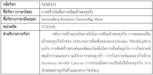 1. GENE101 การสร้างไอเดียการเป็นเจ้าของธุรกิจ