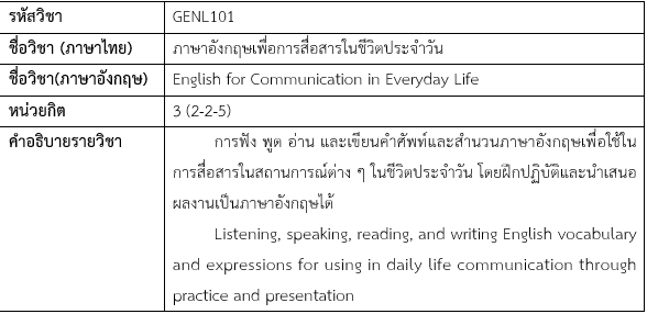 1. GENL101 ภาษาอังกฤษเพื่อการสื่อสารในชีวิตประจำวัน