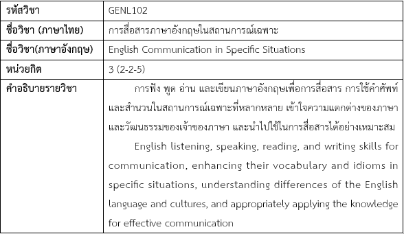 2. GENL102 การสื่อสารภาษาอังกฤษในสถานการณ์เฉพาะ