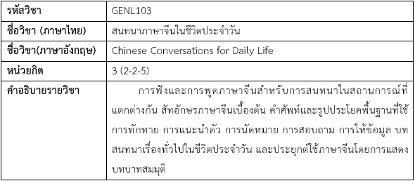 3. GENL103 สนทนาภาษาจีนในชีวิตประจำวัน