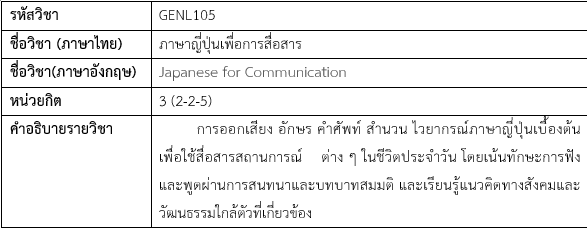 5. GENL105 ภาษาญี่ปุ่นเพื่อการสื่อสาร
