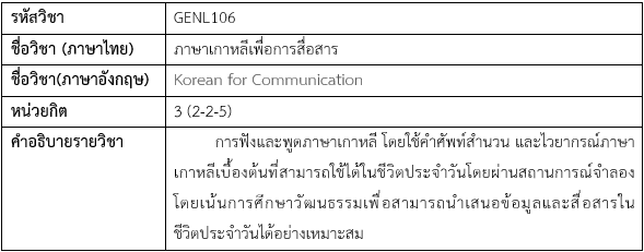 6. GENL106 ภาษาเกาหลีเพื่อการสื่อสาร